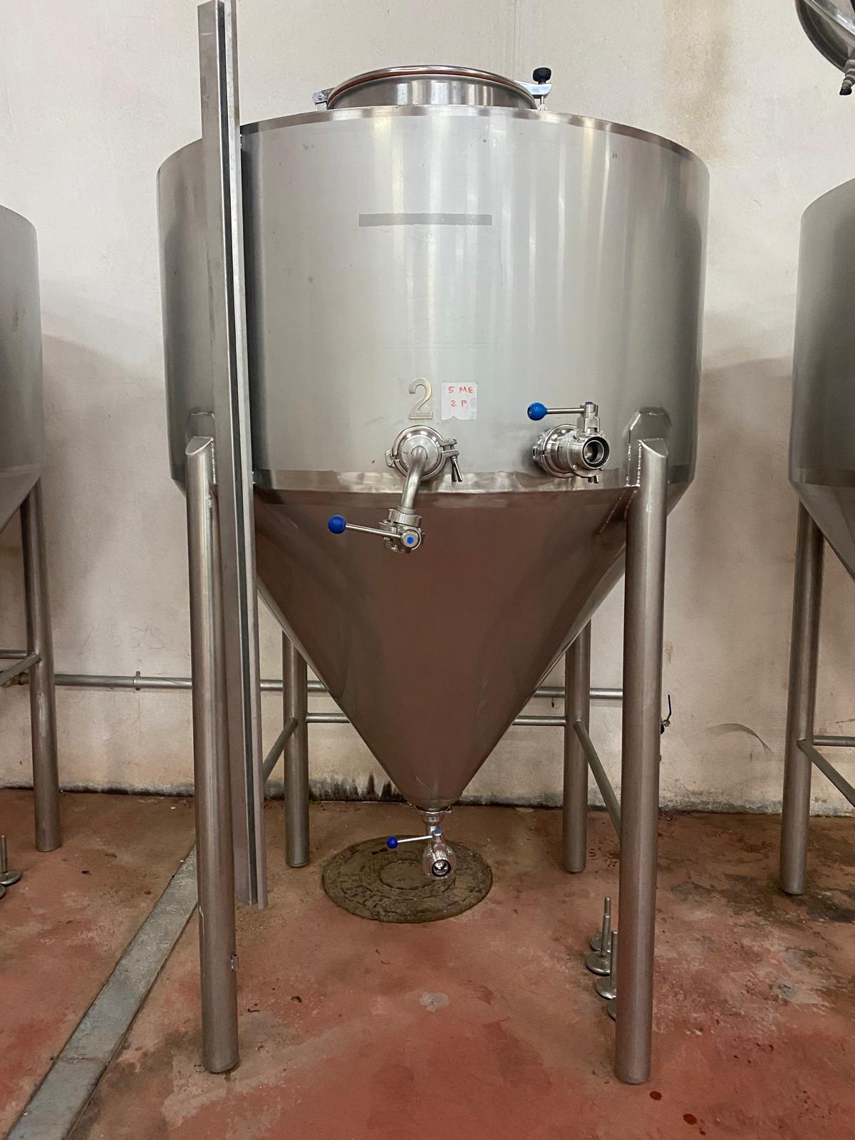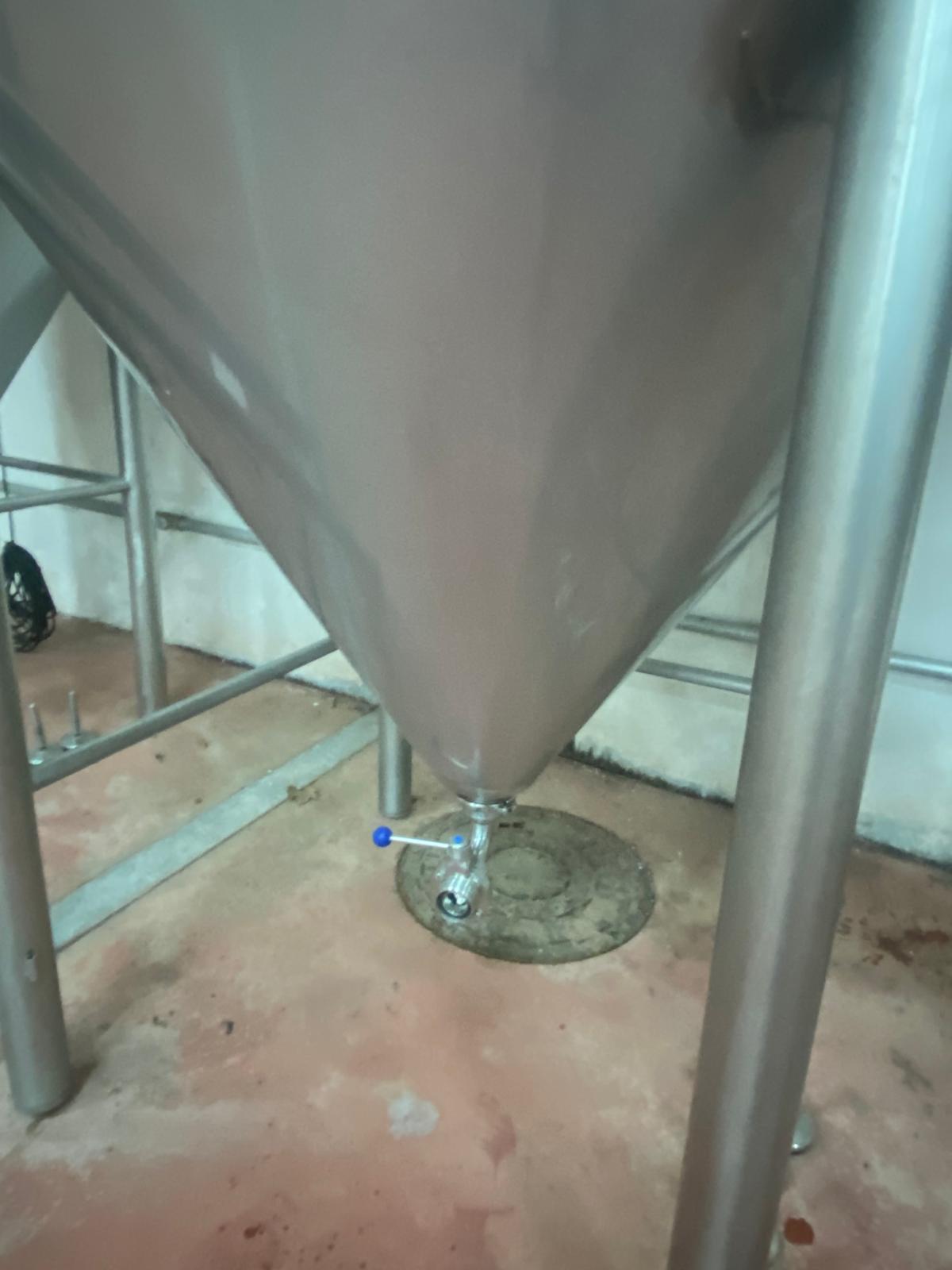 Depósito de acero inoxidable troncocónico con capacidad de 1.150 litros, medidas altura 2.35m y de diámetro 1.40m