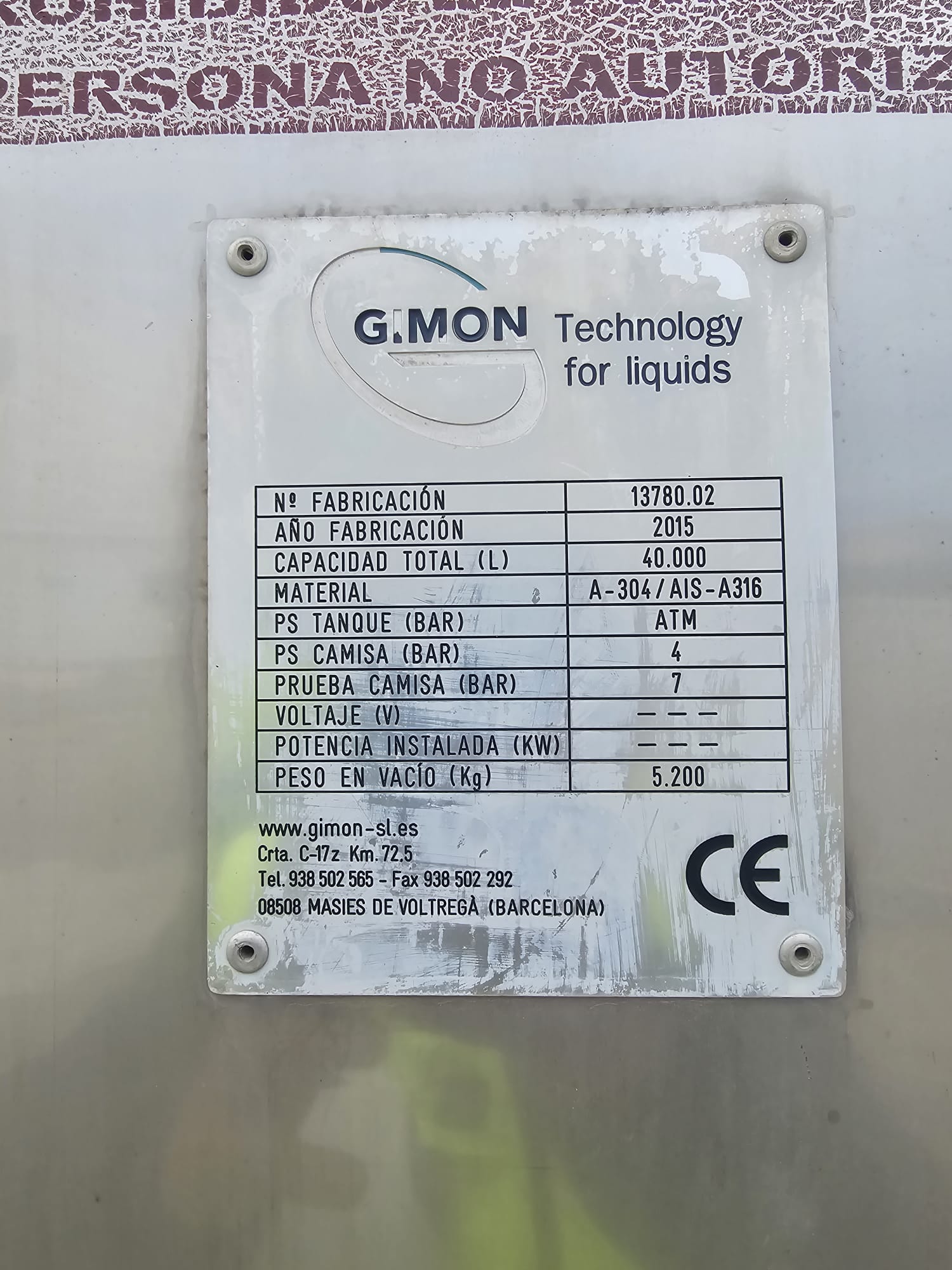 Depósito de gran capacidad de acero inoxidable.